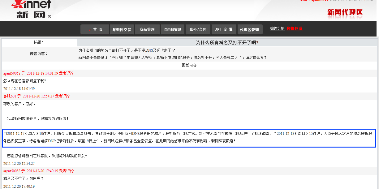 近期因新網(wǎng)DNS服務(wù)器頻受攻擊,導(dǎo)致部分網(wǎng)站不能正常訪問,由此給您帶來的不便,我們深表抱歉! 我們已經(jīng)做了居多的補救措施,包含手動更換DNS,如果發(fā)現(xiàn)您的網(wǎng)站不能正常訪問,請及時聯(lián)系我們的工作人員,我們將在第一時間協(xié)助您來處理,感謝您的理解和支持! 24小時值班電話: 13554755501(陳先生)